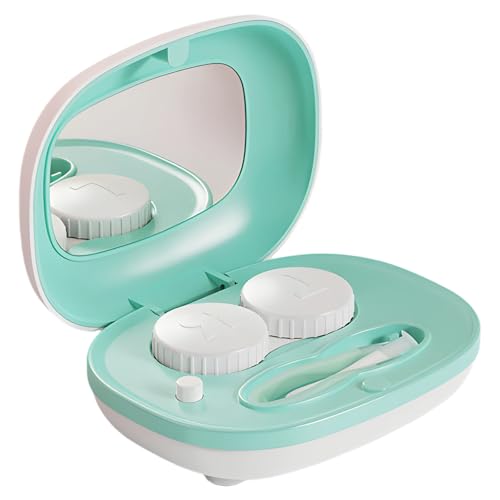 Heveer Étui de Lentilles de Contact Portable avec Mirroir Pince à Épiler Bâtonnet Bouteille de Solution pour Voyage À La Maison 2 Pièces