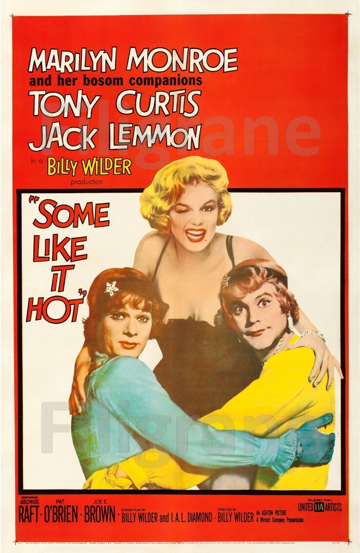 KUSTOM ART Poster mural décoratif série Locandine Film célèbre Some Like It Hot à quelqu'un comme chaud avec Monroe, Curtis Lemmon Impression artistique sur papier couché 40 x 30 cm sans cadre