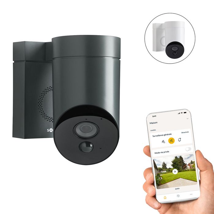 Somfy 1875326 - Outdoor Camera 2 grise - Caméra de surveillance extérieure wifi avec détection intelligente - 1080p Full HD - Sirène 110 dB