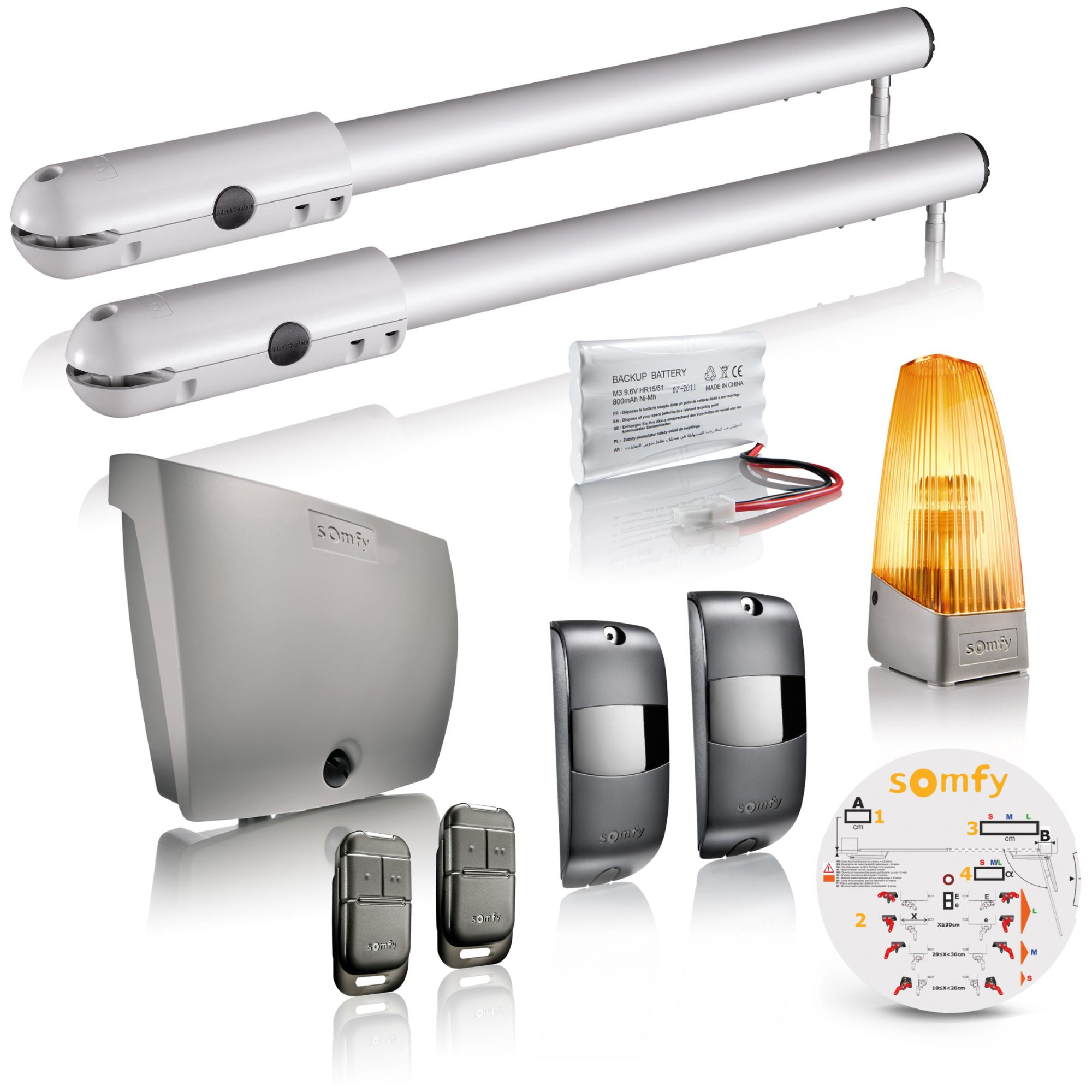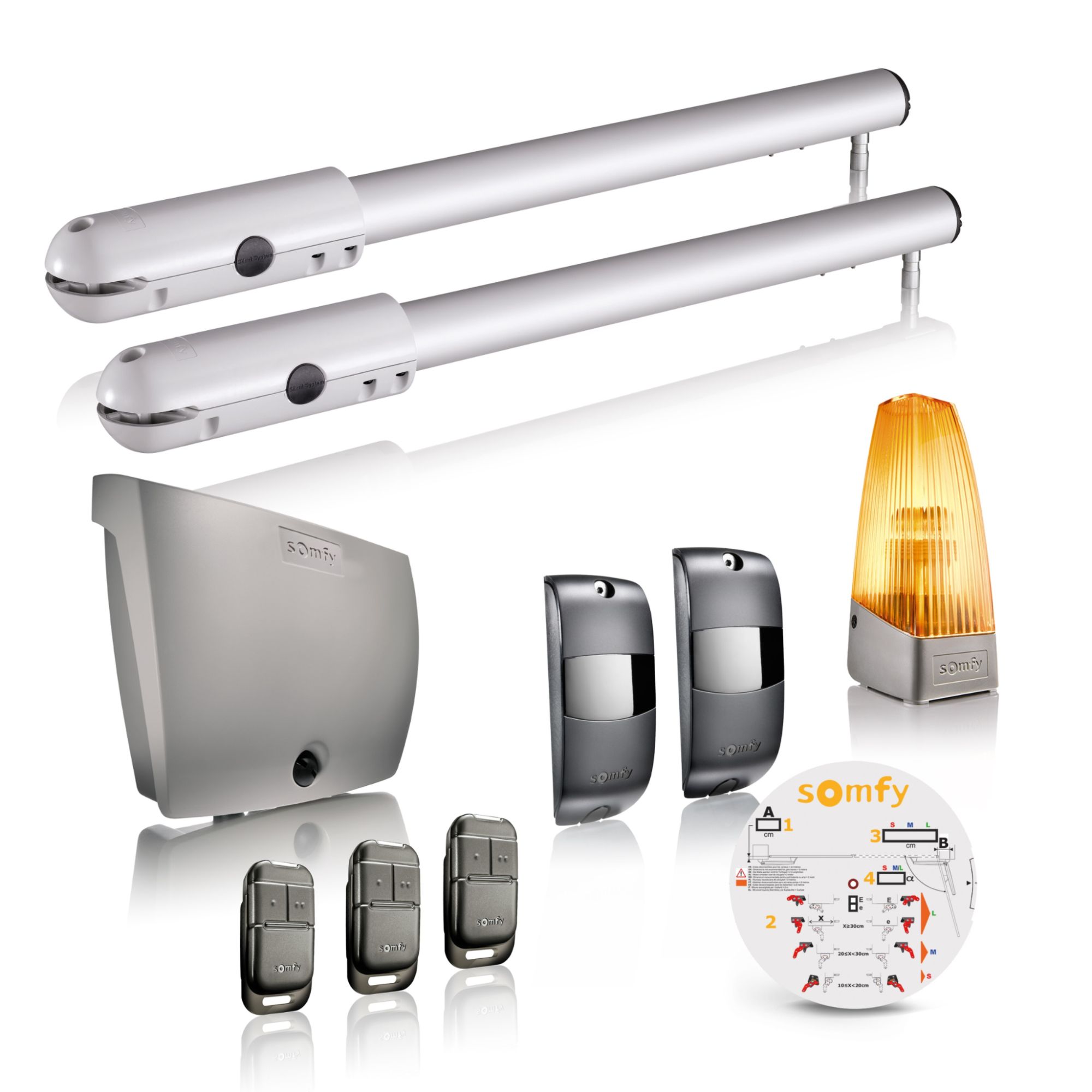 Somfy 1240630 - Kit de Motorisation pour portail battant SGS Line RTS - Livré avec 3 télécommandes Keytis, feu orange et cellules photoélectriques - Compatible app TaHoma