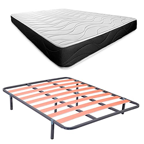 DUÉRMETE ONLINE - Lit Complet avec Matelas viscoélastique Lite réversible, épaisseur 23 cm + sommier renforcé 40 x 30 avec Pieds, 90 x 190 cm