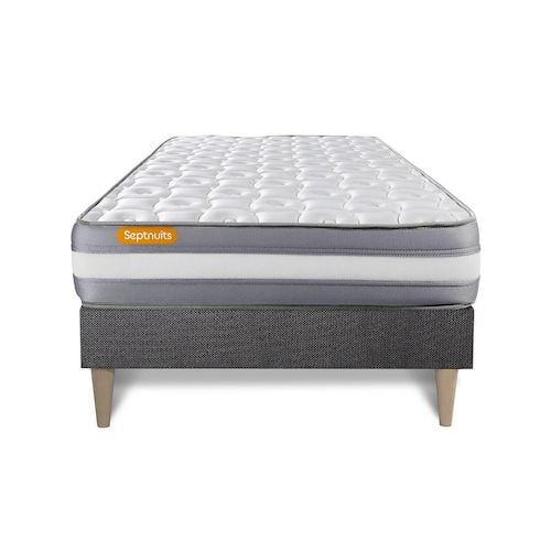 Matelas + sommier gris 90x190 Memo Spring Ressorts ensachés 3 zones de confort MAXI épaisseur gris 90 x 190 cm