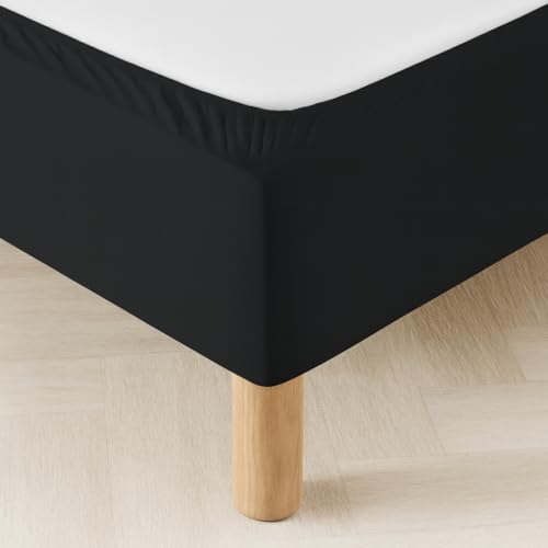 Cache Sommier 90x190 Noir – Tissu Doux et Extensible – Rendu Impeccable – Facile à Installer