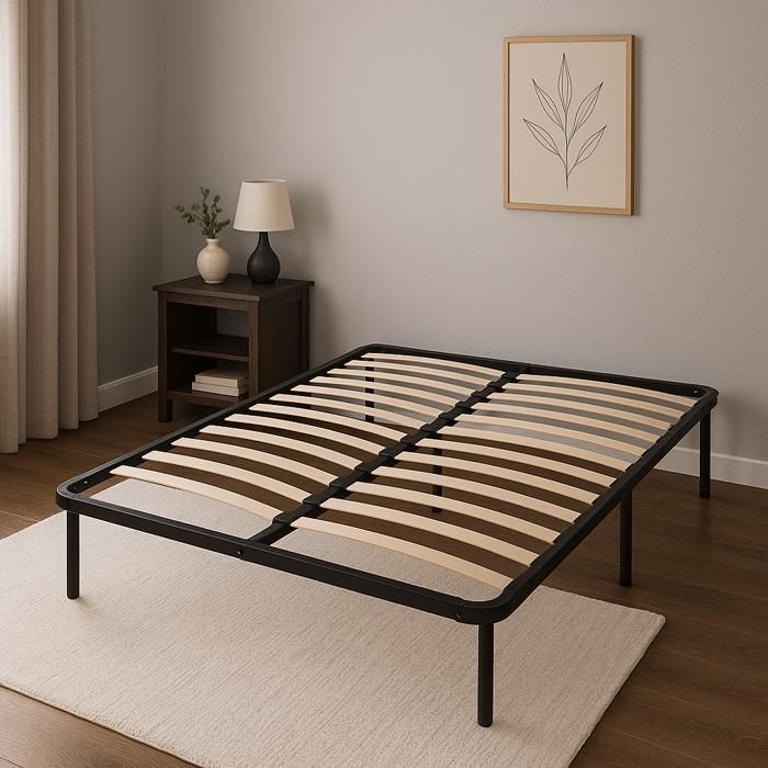 jacky - Solide et Confortable Sommier 140x190 x 29 cm Cadre a lattes 9 Pieds en Metal - Montage Rapide et Facile
