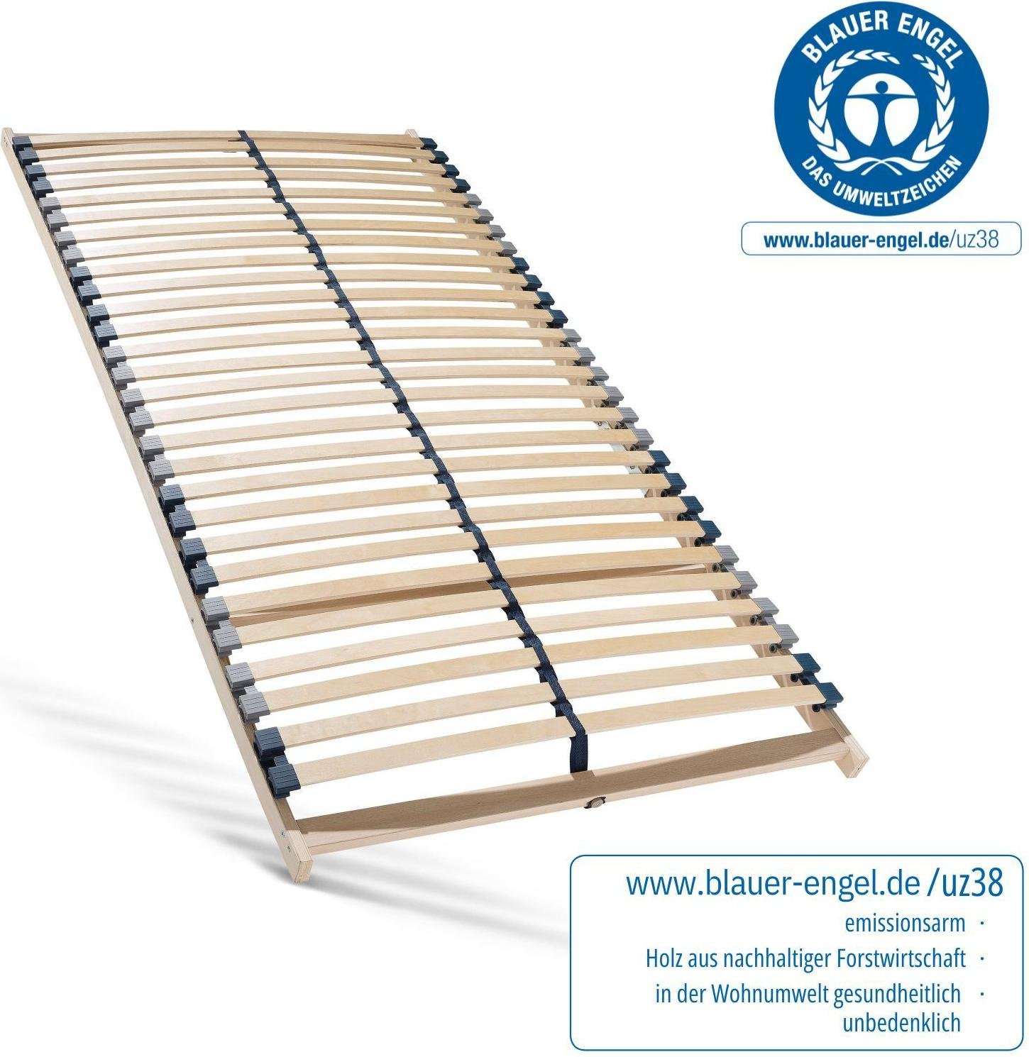 Sommier à lattes 100x200, Sommier à lattes ergonomique 7 zones avec cadre stable en bois de hêtre, 28 lattes, Fabriqué en Allemagne, à monter soi-même, charge admissible env. 150Kg, Lattes flexibles en bois à ressort