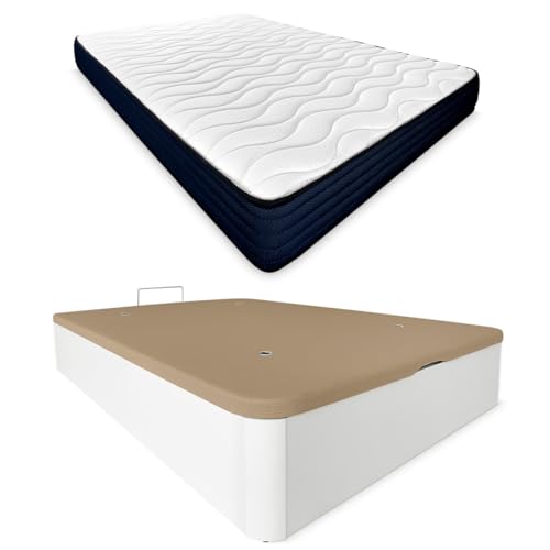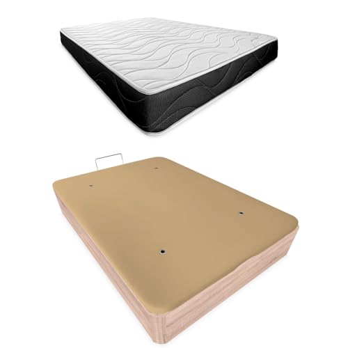 Somnia Descanso Bombay 20 Pack Matelas viscoélastique réversible + sommier en Bois Rabattable renforcé Grande capacité, Mousse, Beige (Cambria), 135 x 190