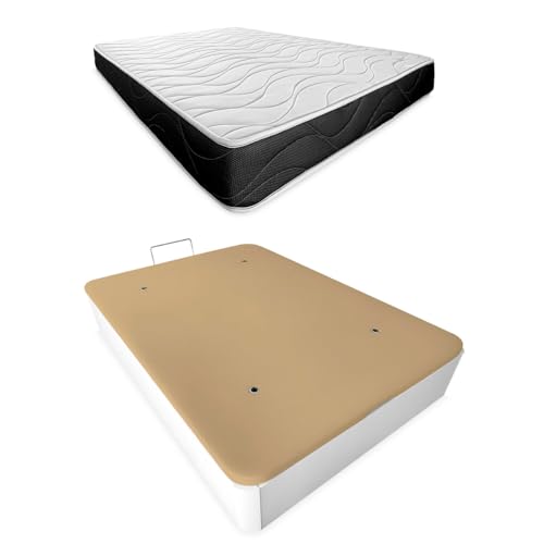 DUÉRMETE ONLINE Pack Matelas viscoélastique Viscotec avec sommier en Bois Rabattable Grande capacité, Couleur Blanc, 150 x 190 cm