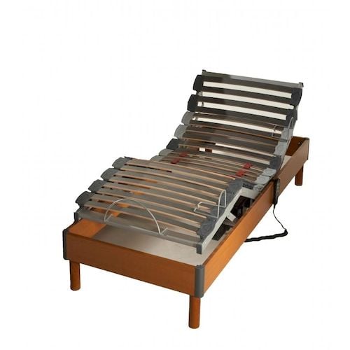Lot de sommier relaxation bois merisier 5 plans avec lattes multiplis 2x80 x 200 bois 2 x 80 x 200 cm