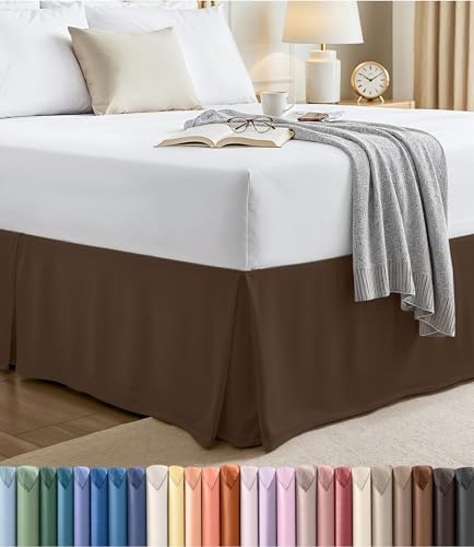 Utopia Bedding Cache-sommier double – Volant doux à quatre plis – Facile à installer avec une chute de 40,6 cm – Qualité hôtelière, résistant au rétrécissement et à la décoloration (grand lit, marron)