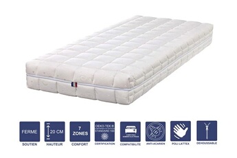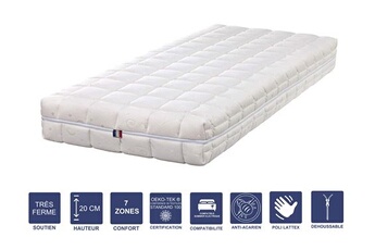 Matelas Mémoire de Forme 80x200 x 20 cm Très Ferme - Spécial Sommier Electrique - Déhoussable Housse Lavable - 7 Zones de Confort - Noyau Poli Lattex