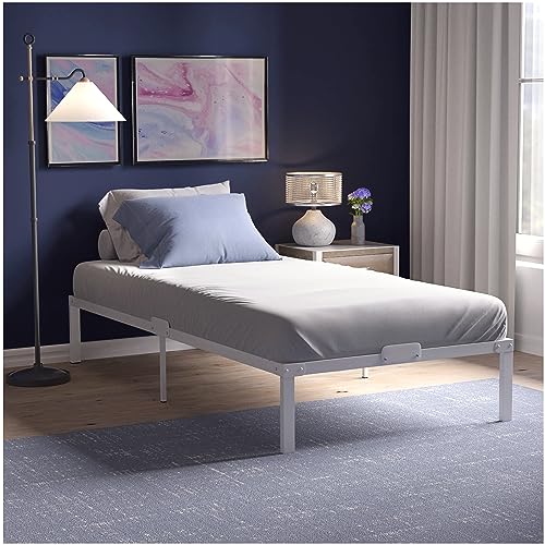 Dreamzie Cadre de Lit 90x200 avec Sommier en Métal Blanc - Sommier 90x200 avec Pieds - Hauteur de 41 cm - Structure Solide, Assemblage Facile, Grande Capacité de Rangement 38cm