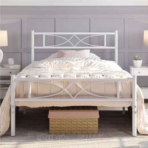 Yaheetech Cadre de Lit 90x200 cm avec Sommier, Lits Simples 1 Place pour Adulte, Lits en Métal 1 Personne Une Place, Lit Moderne en Fer Forgé, 32,5 cm Espace de Rangement, Assemblage Facile, Blanc