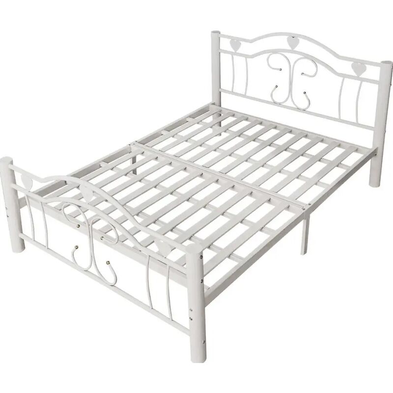 Cadre de Lit Blanc Métal 160x200 cm avec Sommier à Lattes et Espace de Rangement