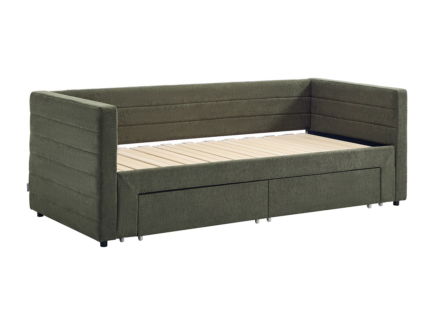 Lit banquette 2 x 80 x 200 cm - Avec sommier peigne et tiroirs - Tissu texturé - Vert - CAMITY