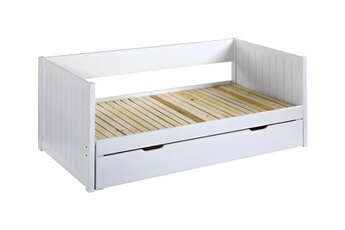 Vente Unique Lit gigogne banquette 90 x 190 ou 180 x 190 cm Avec sommier peigne et tiroirs Pin et MDF Blanc DINIVA
