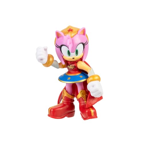 Figurine articulée DC x Sonic Amy en Wonder Woman (13 cm), sous Licence Officielle Jakks Pacific, Design détaillé et Ultra-articulé, Emballage Collector.