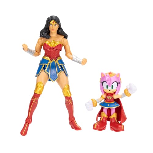 Pack de Figurines DC x Sonic Amy et Wonder Woman, sous Licence Officielle Jakks Pacific, Comprenant Une Figurine d'Amy 6,35cm et Une Figurine Classique de Wonder Woman 12,7cm