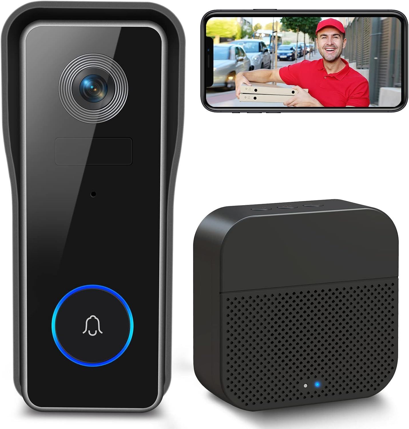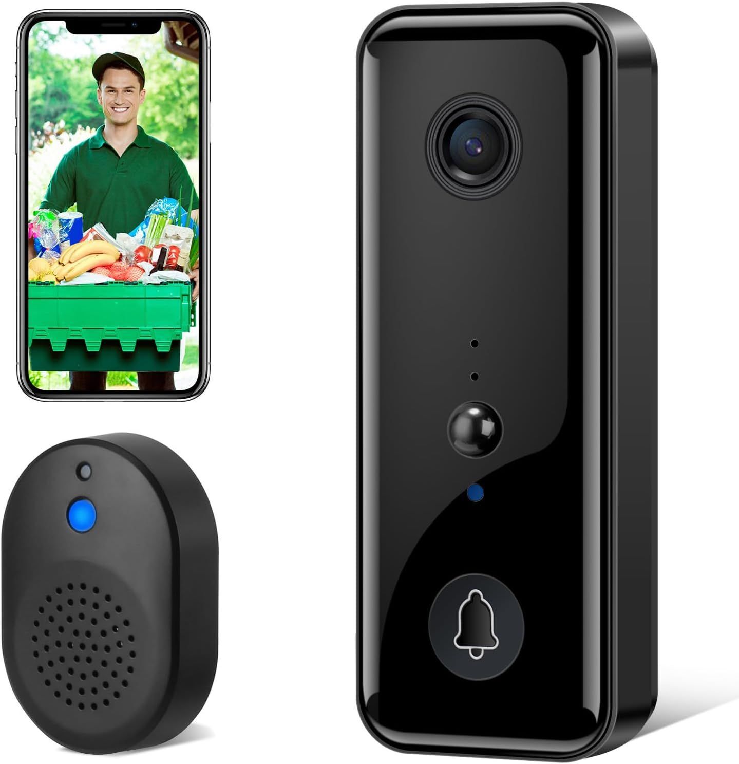 Sonnette avec Caméra, Microphone, Haut-Parleur, Nocturne HD, Contrôle par Application, Détection de Mouvement, WiFi 2,4 GHz, Télécommande sans Fil, Sonnette Vidéo Intelligente