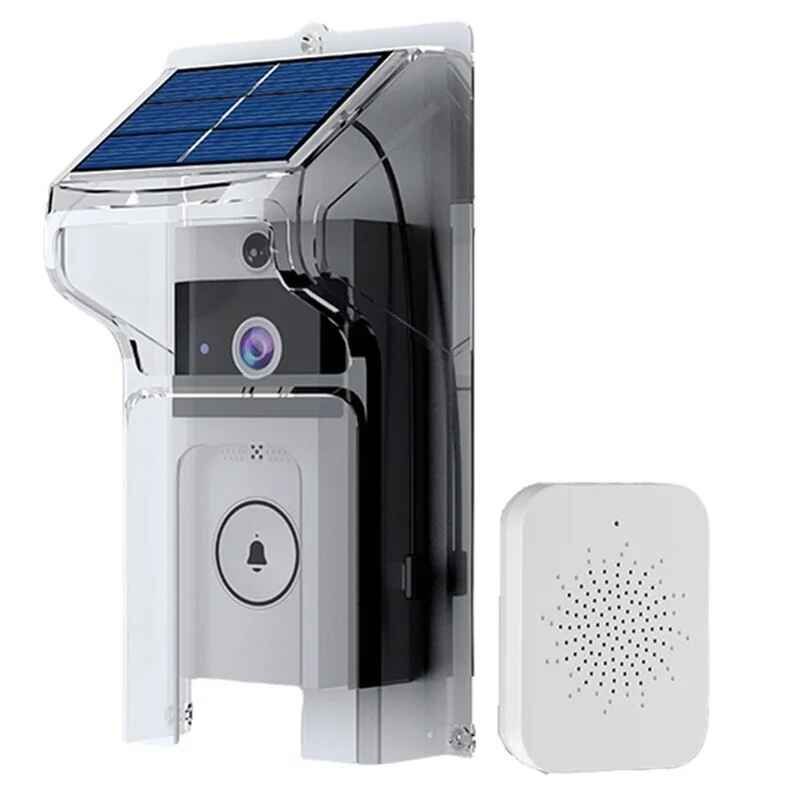 Wifivisual-Sonnette sans fil avec caméra,charge solaire,étanche,vision nocturne,maison intelligente,HD,interphone bidirectionnel,voix - Type White