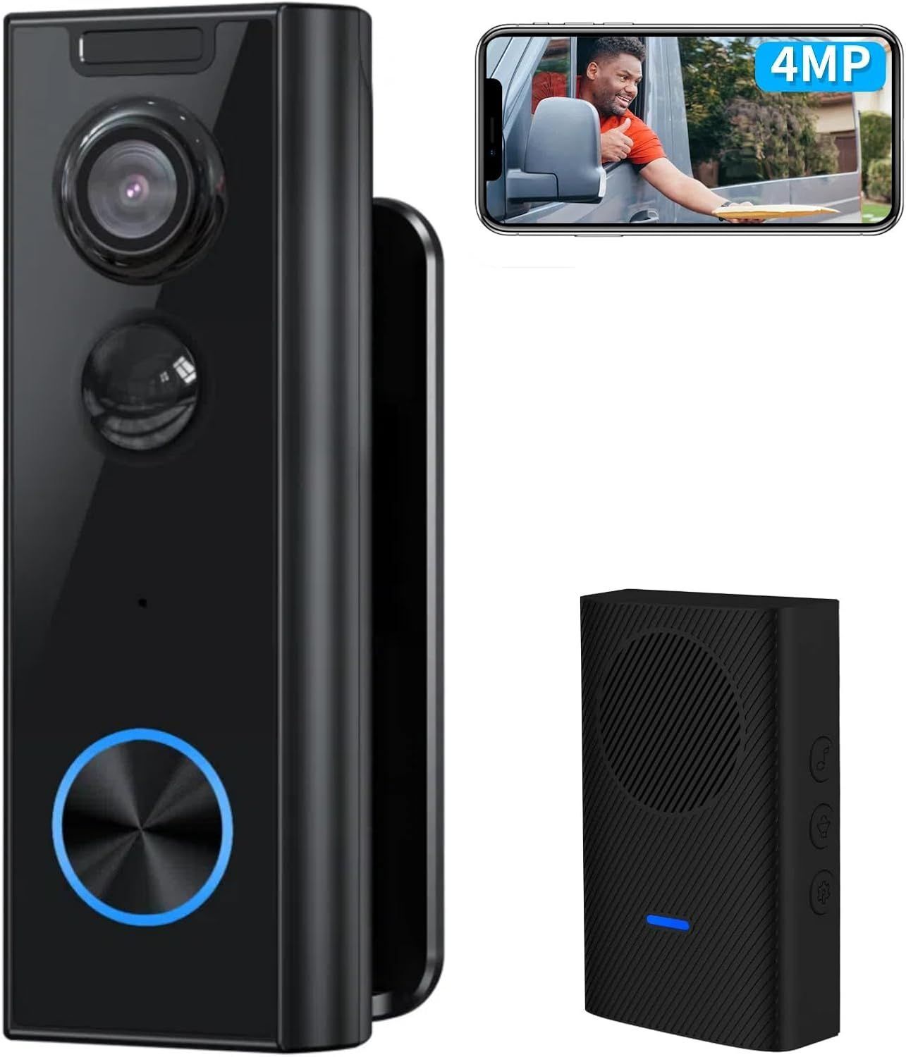 Sonnette Sans Fil Avec Caméra, 4Mp Uhd Sonnette Sans Fil Exterieur Etanche Avec Support Multi-Angle, Détection Mouvement Pir, 2.4G Wifi, Audio Bidirectionnel, Compatible Avec Alexa