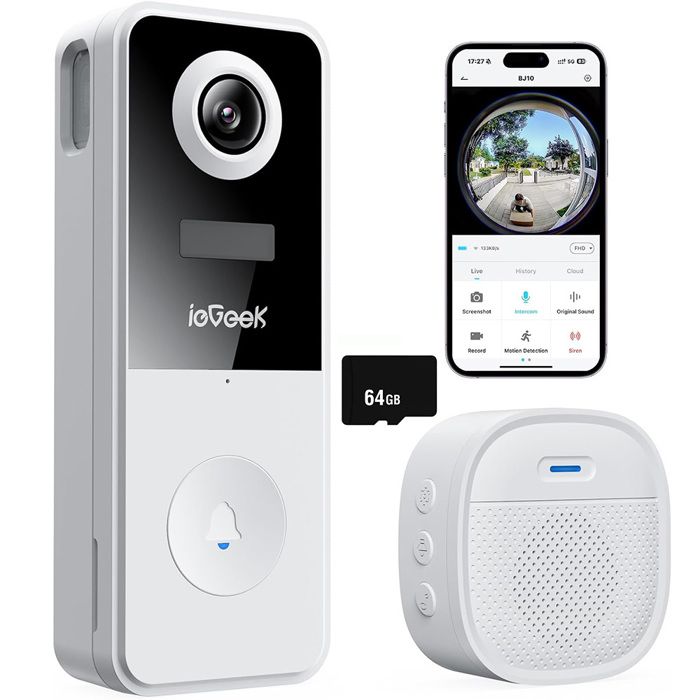 ieGeek Sonnette sans Fil avec Camera 2K Sonnette Exterieur WIFI Etanche Fisheye 180° Audio Bidirectionnel Vision Nocturne PIR
