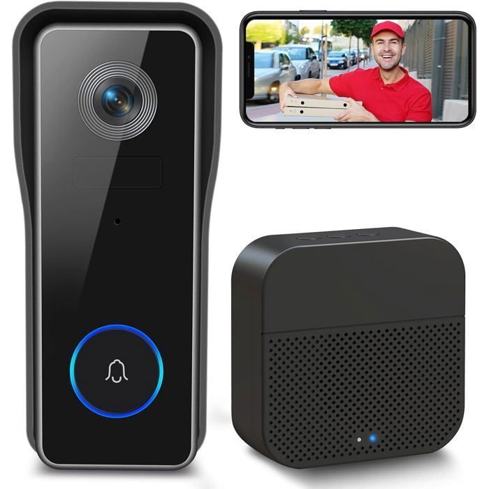 1080P Hd Sonnette Sans Fil Avec Caméra, Exterieur Etanche, Visiophone Sans Fil Avec Carillon Détection De Mouvement Pir, Vision Nocturne, Audio Bidirectionnel, Ip66 Étanche