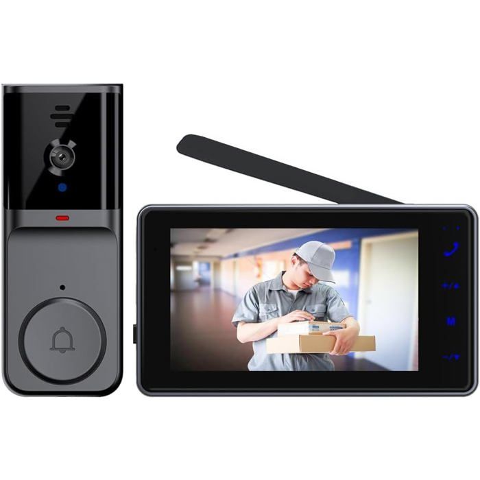 Sonnette Sans Fil Avec Caméra Extérieur Étanche 1080PVisiophone Vidéo Sans Fil Écran 4.3Interphone Vidéo Pour Famille Angle