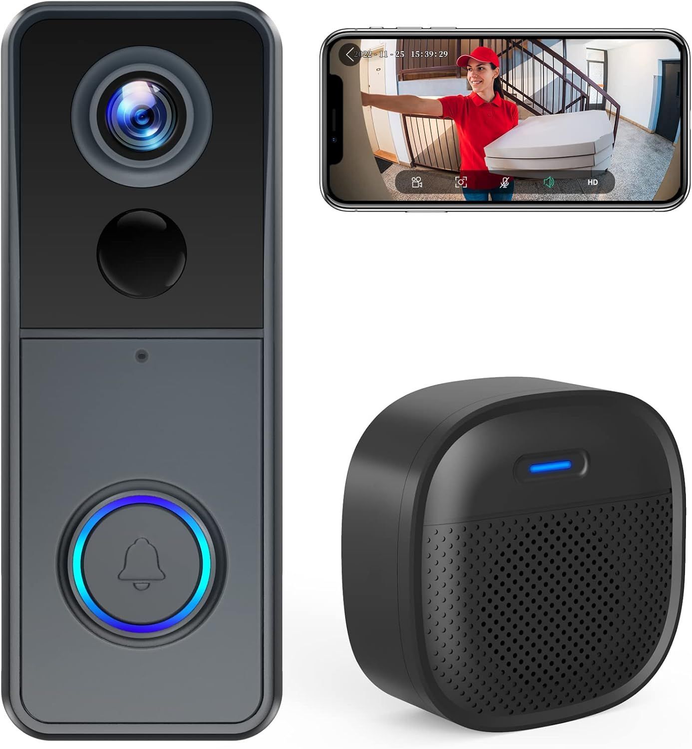 Ailgely Sonnette sans Fil avec Caméra, Audio bidirectionnel, contrôle par Application Tuya, visualisation Nocturne, WiFi 2,4 G Uniquement, Carte TF/Stockage Cloud, Indice d'étanchéité IP65