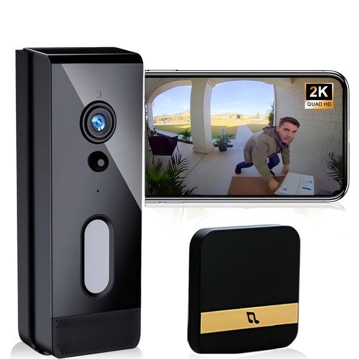 Sonnette connectée Wi-Fi avec caméra - Sécurité domestique sans fil avec vision nocturne, contrôle par application et longue durée de vie de la batterie