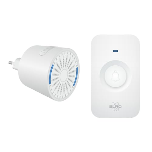 ELRO DB3000 Sonnette de Porte sans Fil - 1x récepteur à Piles + 1x Plug-in - 64 Mélodies - Distance sans Fil : 300m - Blanc