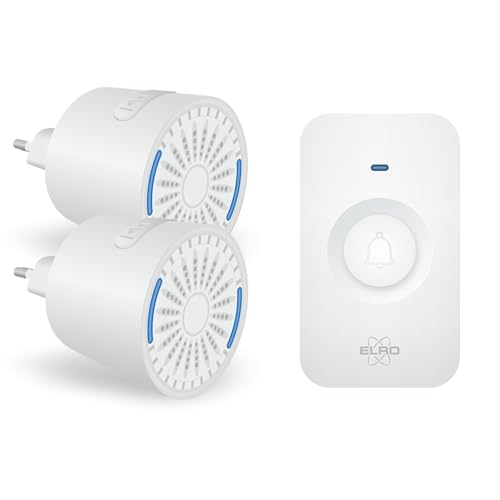 ELRO DB3000 Sonnette de Porte sans Fil - avec 2X récepteur à Piles - 64 Mélodies - Distance sans Fil : 300m - Blanc