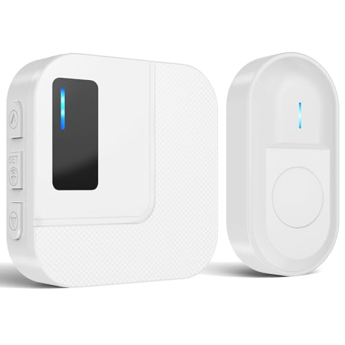 SURFOU Sonnette Sans Fil Extérieur Étanche 300 Mètres Sonnette de Porte Carillon Electronique Kit pour la Maison avec Récepteurs Enfichables 55 Sonneries, 5 Volumes (blanc, 1 récepteur + 1 émetteur)