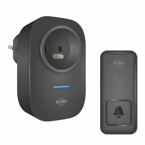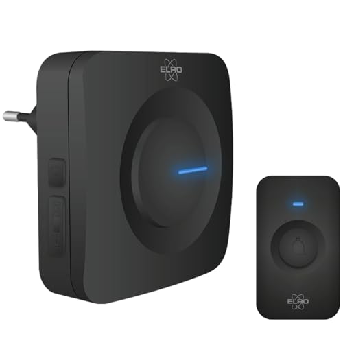 ELRO DB2000 Sonnette de Porte sans Fil - avec récepteur compacts enfichables - portée 200 mètres - étanchéité IP65-64 mélodies - Noir