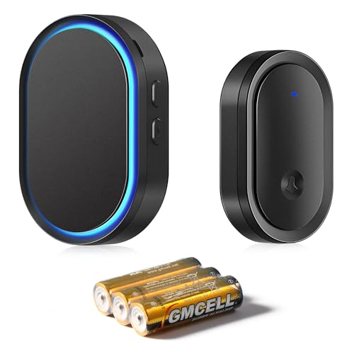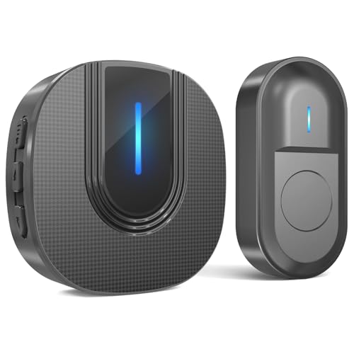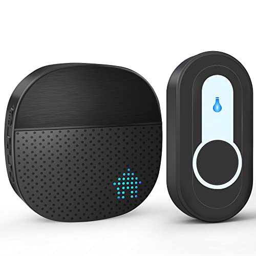 SURFOU Sonnette sans Fil Exterieur Etanche Kit de Carillon avec 300M, Sonnette de Porte Electronique pour la Maison, 55 Mélodies, 5 Volumes, LED Bleu