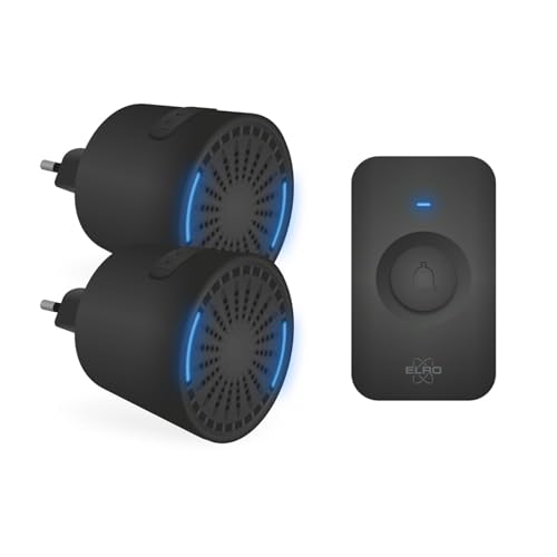 ELRO DB3000 Sonnette de Porte sans Fil - avec 2X récepteur à Piles - 64 Mélodies - Distance sans Fil : 300m - Noir