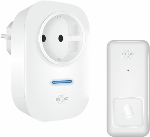 ELRO DB2000 Sonnette de Porte sans Fil - avec récepteur compacts enfichables - portée 200 mètres - étanchéité IP65-64 mélodies - Blanc