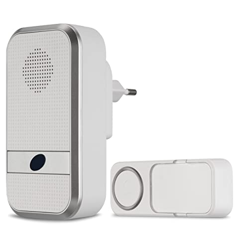 ELRO DB3000 Sonnette de Porte sans Fil - Récepteur Plug-in - sans Batterie - 64 Mélodies - Distance sans Fil : 300m - Blanc
