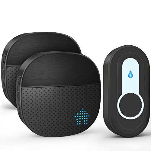 SURFOU Sonnette Sans Fil Extérieur Étanche 300 Mètres Sonnette de Porte Carillon Electronique Kit pour la Maison avec Récepteurs Enfichables 55 Sonneries, 5 Volumes (noir, 2 récepteur + 1 émetteur)