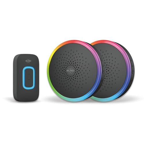 ELRO DB5000 Sonnette de Porte sans Fil - LED Multicolore - 2 récepteurs à Piles - portée de 300 m - étanchéité IP44-61 mélodies