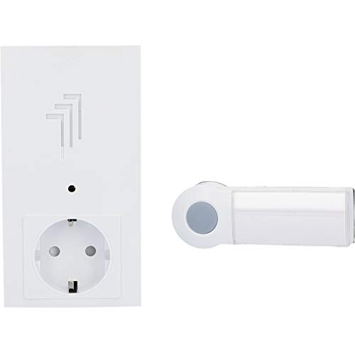 Electraline 59199 Sonnette de porte sans Fil avec prise 10A, 36 Mélodies Programmables, Blanche