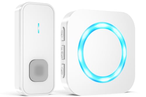 SURFOU Sonnette Sans Fil Exterieur Etanche Carillon Sonnette 300m Distance Émetteur Extérieur et Récepteur Intérieur 55 Sonneries Incluant Noël 5 Volumes au LED Bleu, Blanc