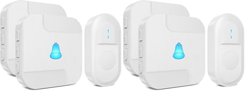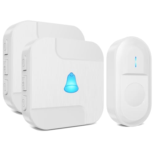 SURFOU Sonnette sans Fil Exterieur Etanche, Kit de Carillon avec 300 Mètres, 2 Récepteurs Enfichables pour la Maison, 55 Mélodies au 5 Niveaux Volumes, LED Bleu, Blanc (Lot de 2)