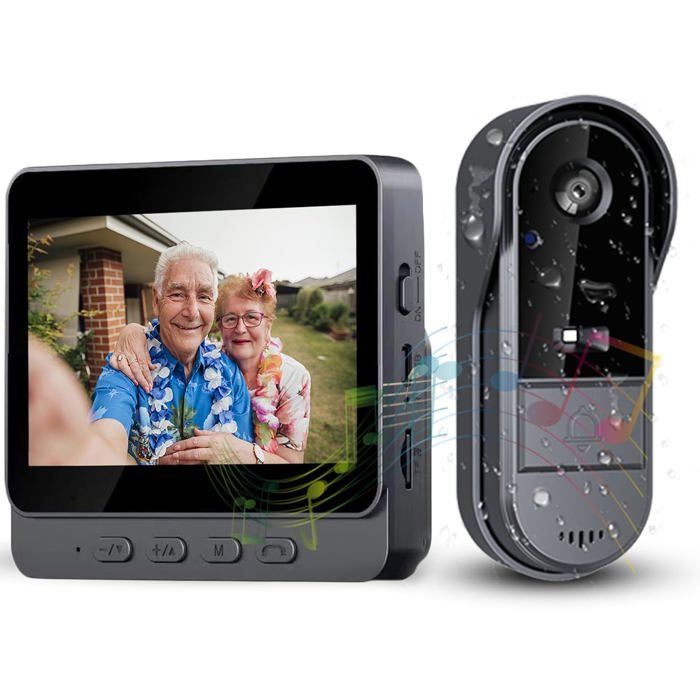Visiophone Vidéo avec Écran Sonnette Sans Fil Exterieur Etanche 1080P Sonnette Sans Fil Avec Camera avec écran IPS de 4.3