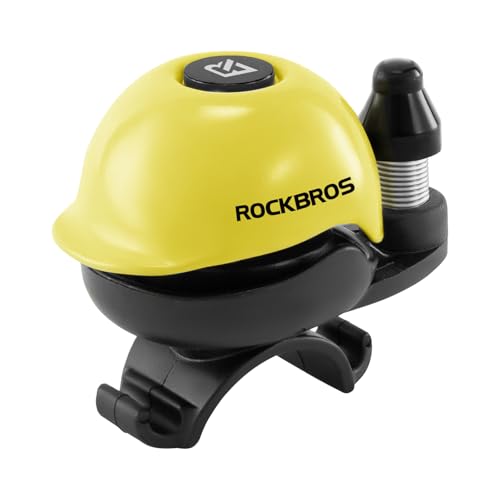 ROCKBROS Sonnette de Vélo 80 DB Compacte pour Guidon 22–34 mm, Cloche de Vélo Rotative 360° en Alliage Résistante aux Éclaboussures pour VTT, Route, Vélo Électrique et Enfants Jaune