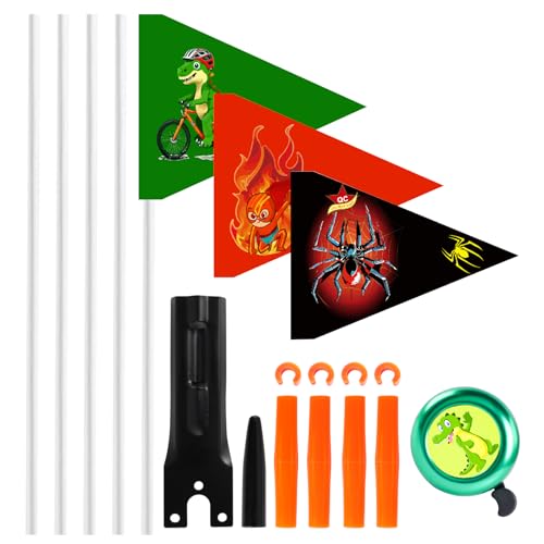 4 Pièces Fanion de Sécurité pour Vélo d'enfant +Sonnette de Vélo,Drapeau Réfléchissant Réglable,Fanion Drapeau,Drapeau De Sécurité pour Remorque