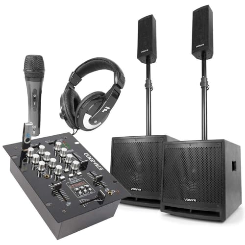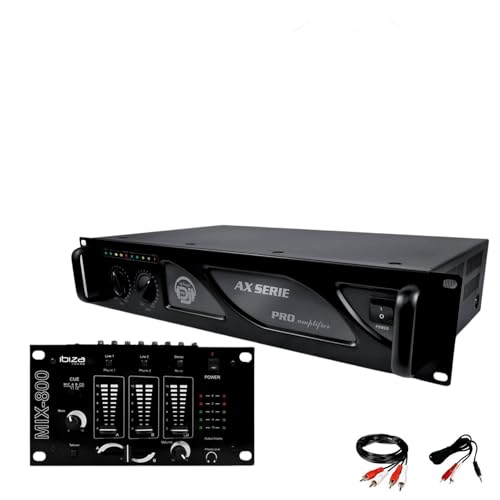 Pack Sono complet DJ-MIX500-BT ampli + enceintes 500W + Table de mixage USB Bluetooth Micro + Câbles
