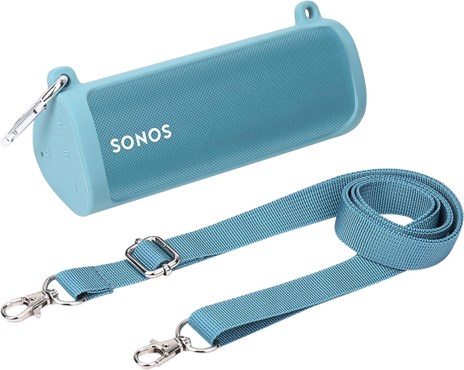 Étui En Silicone Compatible Avec L'Enceinte Bluetooth Portable Étanche Sonos Roam 2 / Sonos Roam/Sonos Roam Sl, Avec Bandoulière Et Mousqueton, Bleu, Étui Uniquement[Z1010]