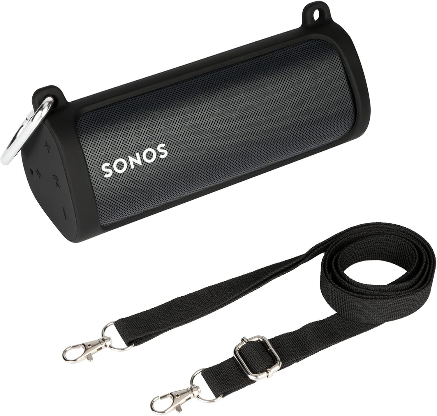 Étui En Silicone Compatible Avec L'Enceinte Bluetooth Portable Étanche Sonos Roam 2 / Sonos Roam/Sonos Roam Sl, Avec Bandoulière Et Mousqueton, Noir, Étui Uniquement[Z1011]