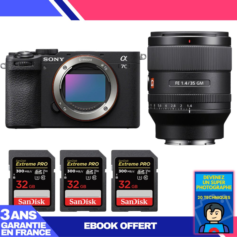 Boitier Sony A7C II Noir + FE 35mm f/1.4 GM + 3 SanDisk 32GB Extreme PRO UHS-II SDXC 300 MB/s + Ebook 'Devenez Un Super Photographe