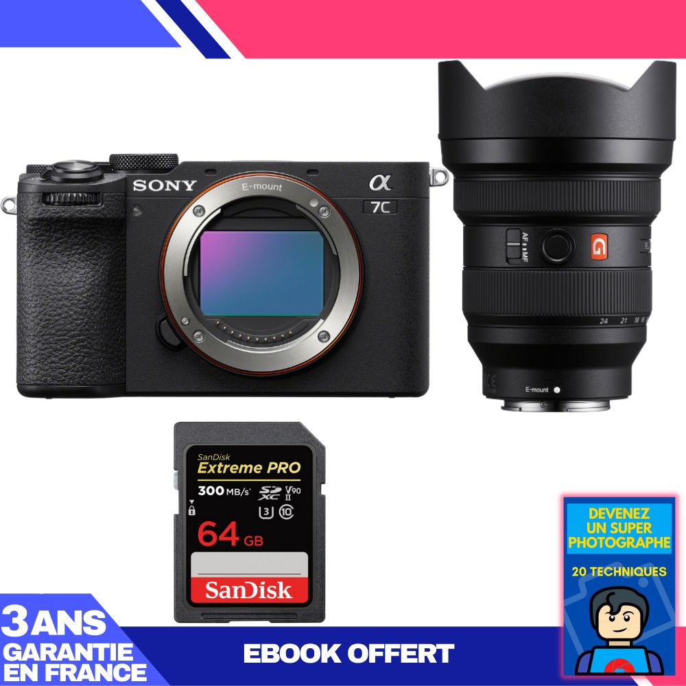 Boitier Sony A7C II Noir + FE 12-24mm f/2.8 GM + 1 SanDisk 64GB Extreme PRO UHS-II SDXC 300 MB/s + Ebook 'Devenez Un Super Photographe